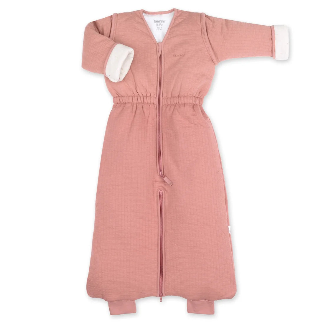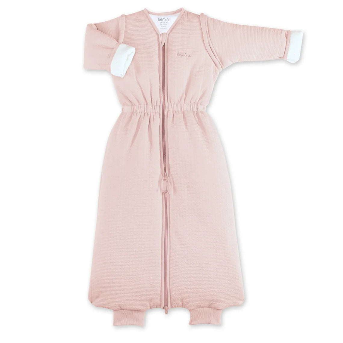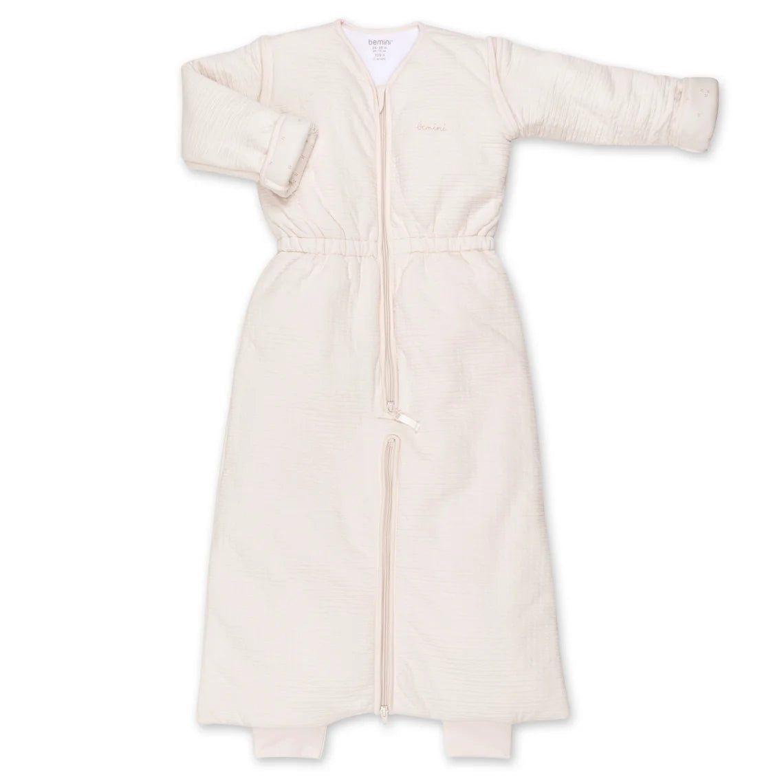 Com mangas amovíveis e um design 2 em 1 com pernas, adapta-se a cada fase e estação, oferecendo liberdade para dormir, sentar ou dar os primeiros passos com segurança.