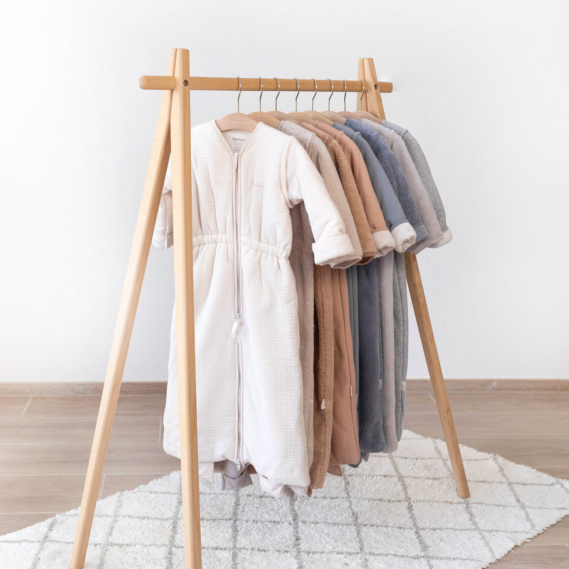 Feito em bambu e algodão muslin, o saco de dormir nuvë envolve o bebé com suavidade e ajuda a manter uma temperatura ideal durante toda a noite, sem lençóis a descobrirem-se nem despertares com frio.